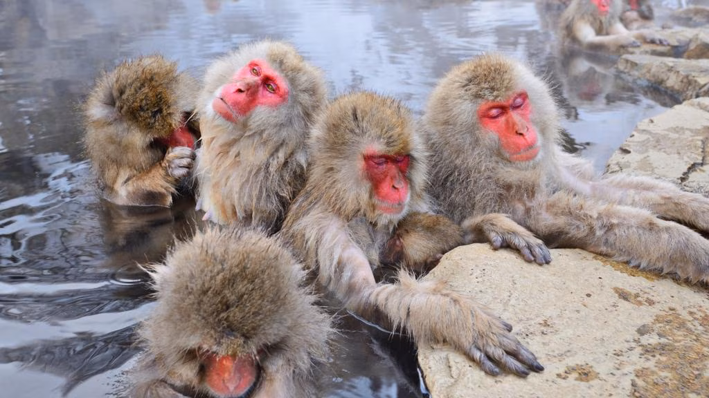 8. See the bathing snow monkeys