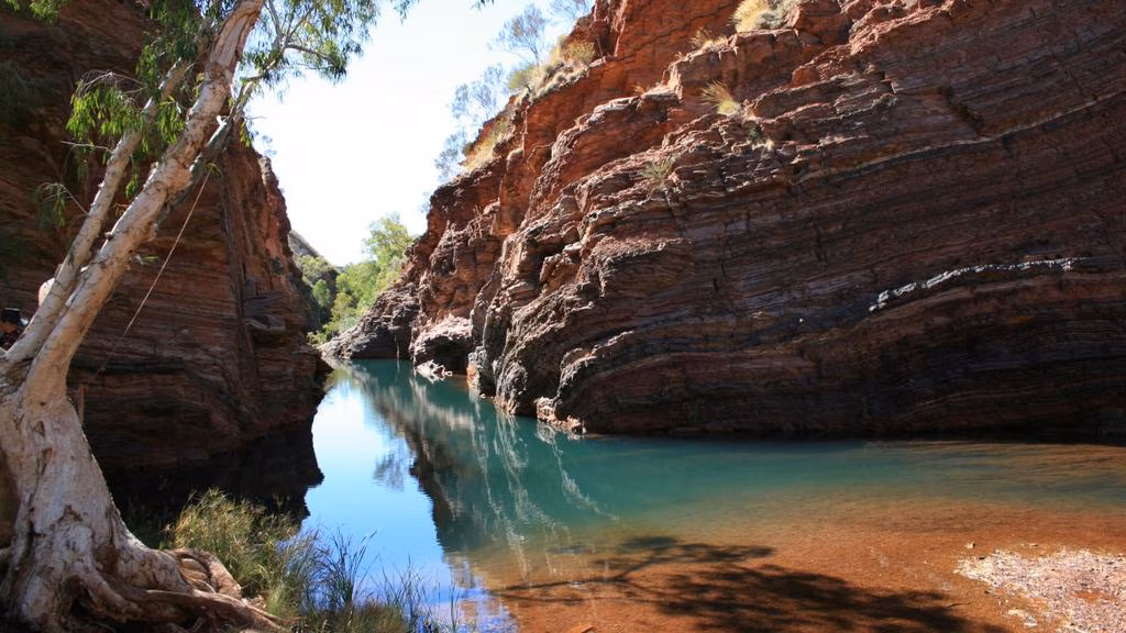Everywhere the reward for all that clambering in the heat is cool, but sunny, swimming holes surrounded by high rockfaces where strangler figs or iron plants cling. The latter, indigenous to the Hamersley Range, only grow where iron ore deposits are rich, making them extremely valuable for bioprospectors.