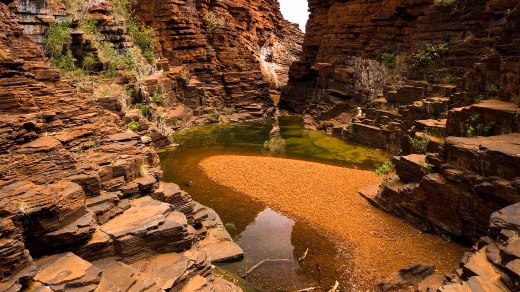 Karijini is one of Australia’s most ancient places, as well as one of the most spectacular. More than 2.5 billion years old, the tropical semi-desert high plateau is dissected by deep gorges carved by rivers over millions of years as sea levels dropped. It’s also WA’s second-biggest national park.
