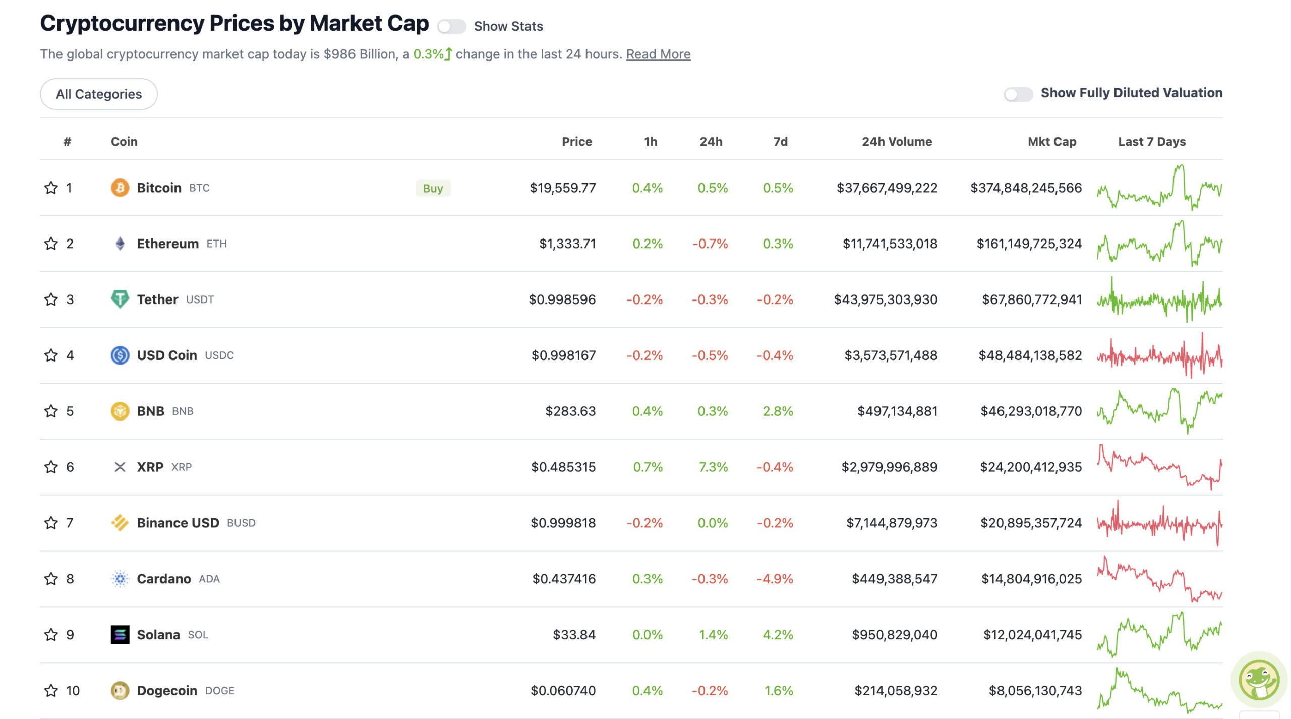 With the overall crypto market cap at US$986 billion and up about 0.3% since yesterday, here’s the current state of play among top 10 tokens – according to CoinGecko.