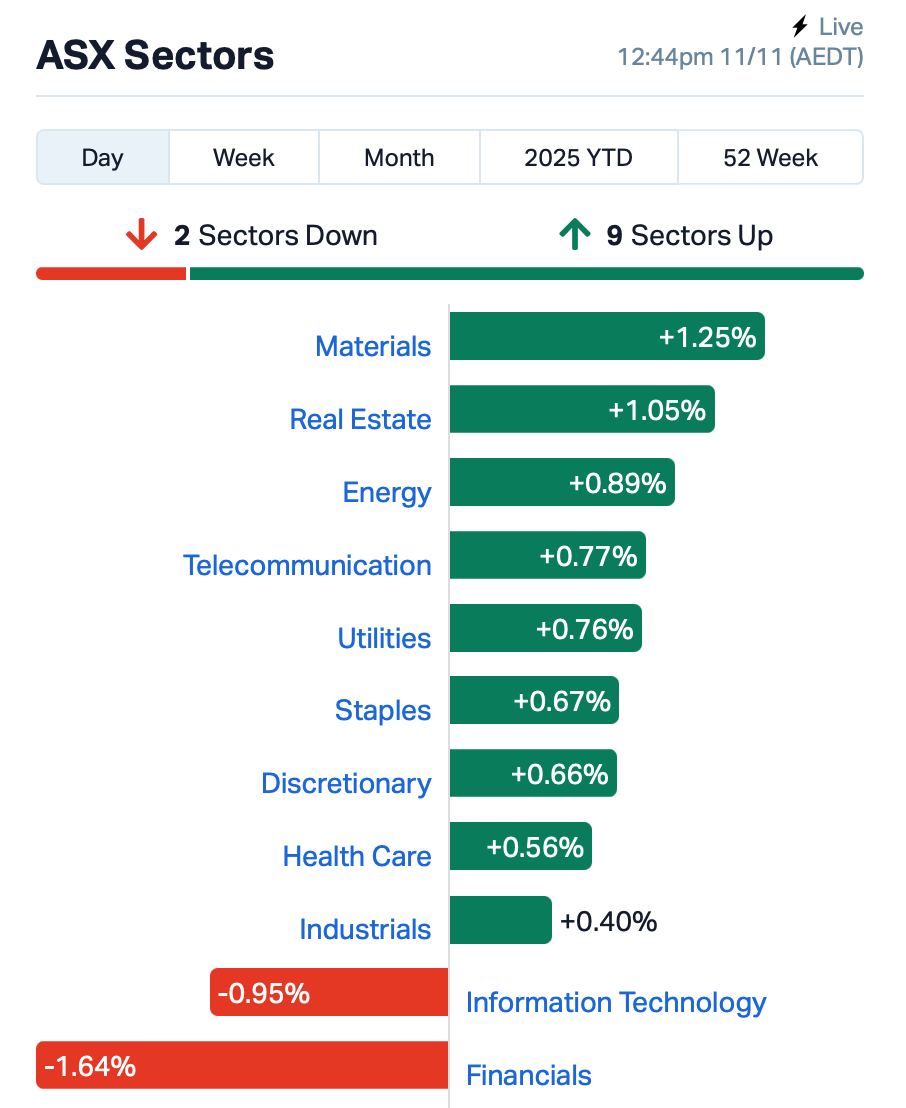 At lunchtime in the east, the ASX had slipped 0.1%, giving back its early morning gains.