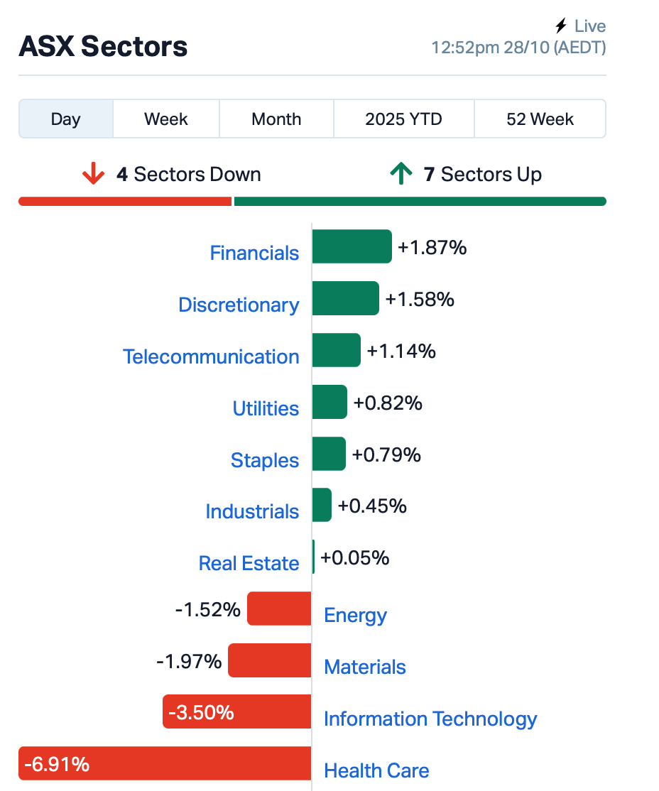 This morning, health and tech sectors were the clear laggards on the ASX.