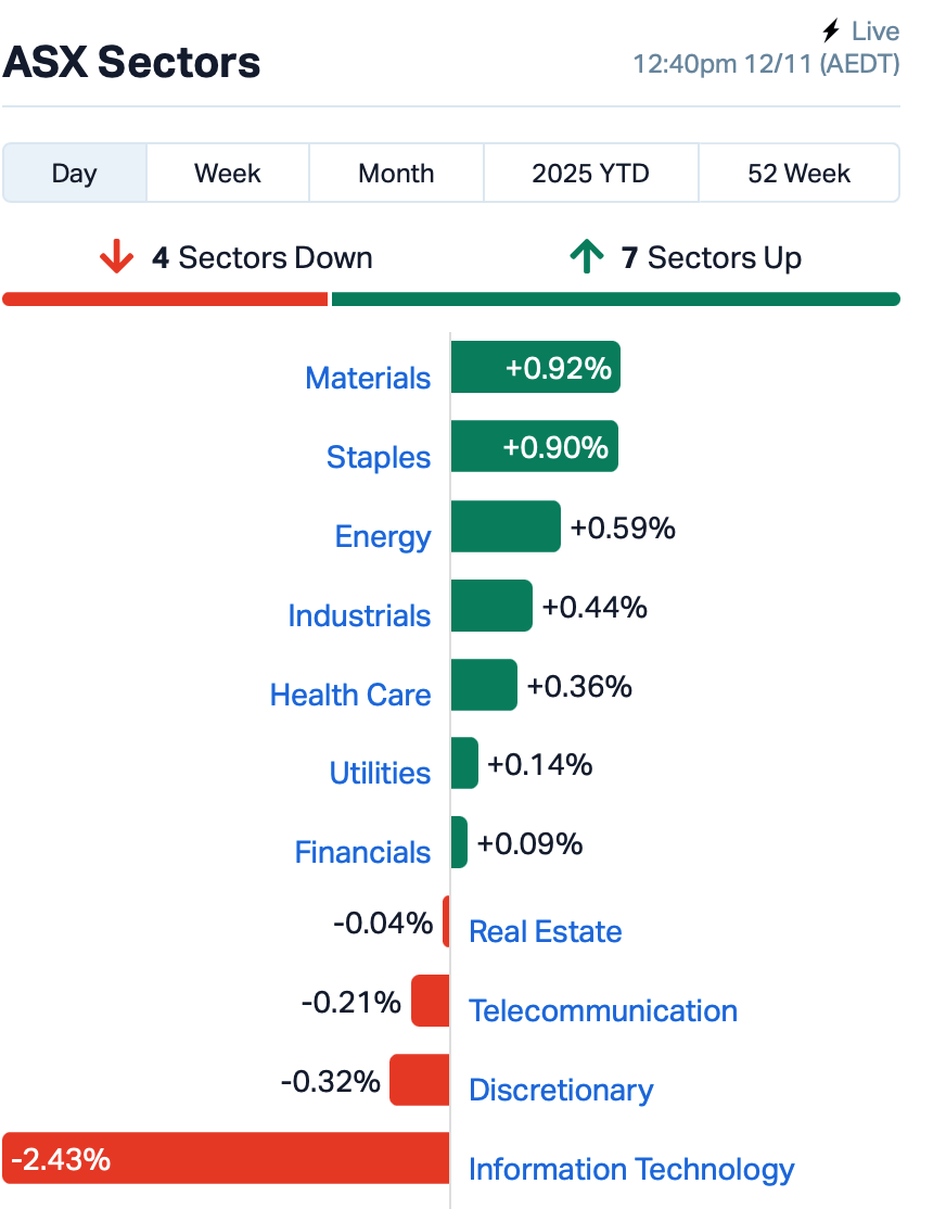 Back home, it was a role reversal from the previous day, with the tech sector taking the hit, down over 2% to start the day. Mining stocks, on the other hand, kept the market’s lights on, with a weaker US dollar making metals sparkle again.
