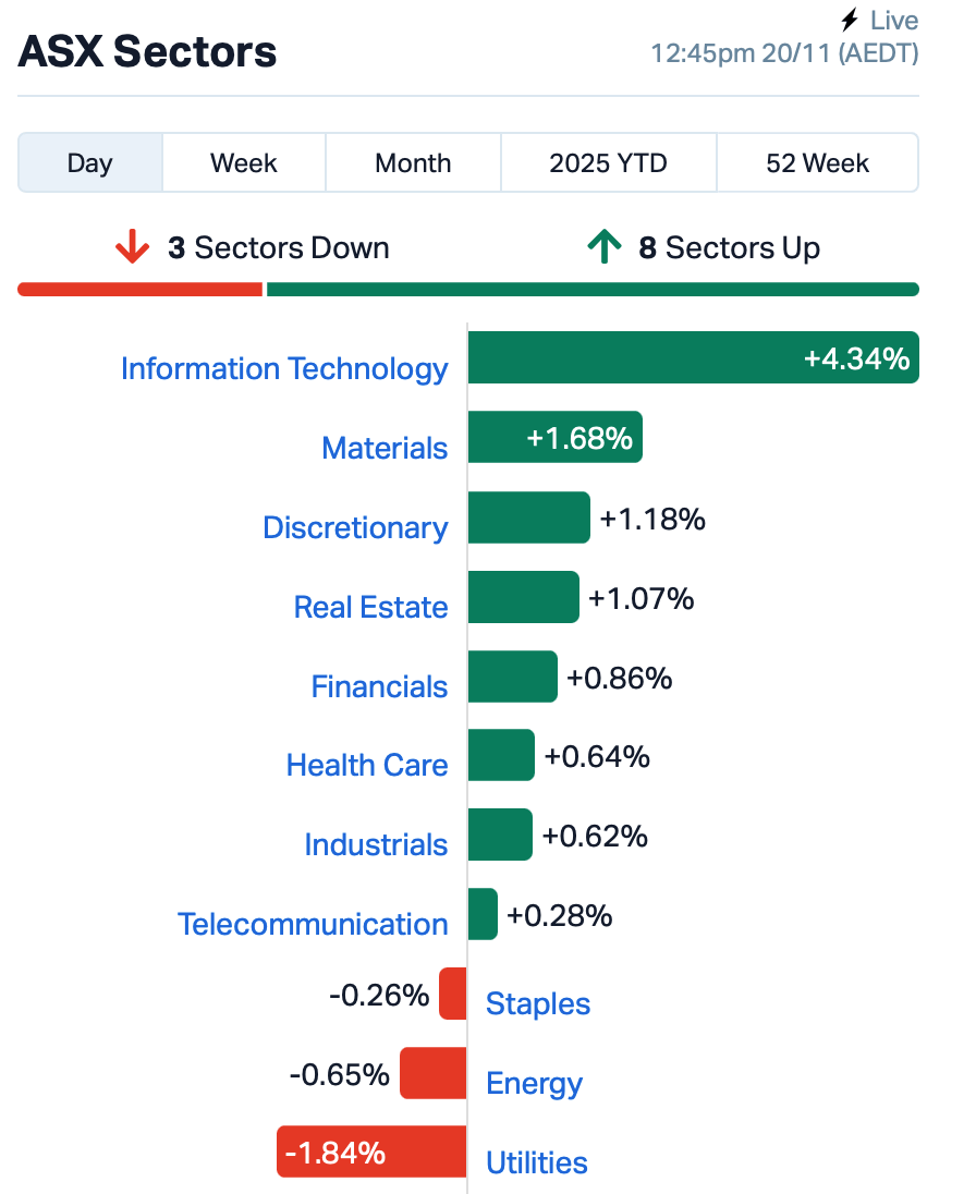 By mid-morning, the ASX was up around 1% in the eastern states, a sharp rebound from the near six-month low it flirted with only 24 hours earlier.