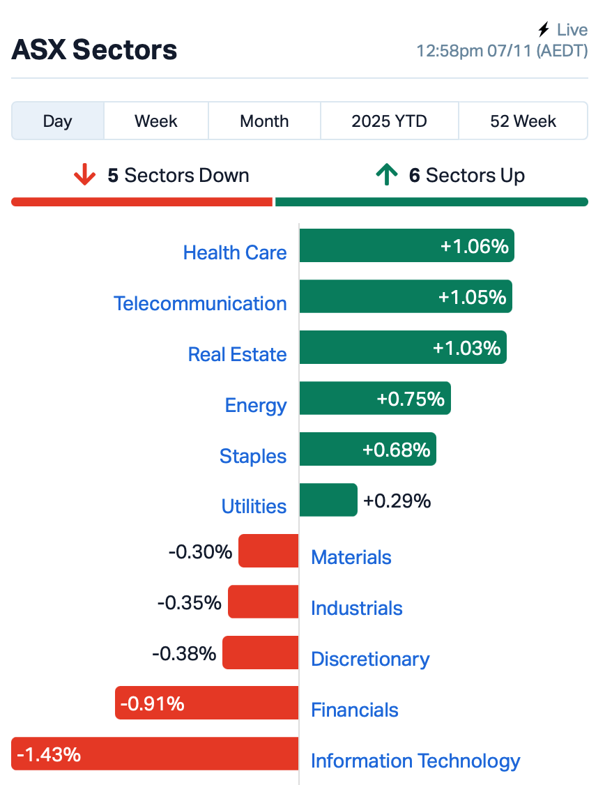 Back on the ASX, healthcare and telco stocks were doing the heavy lifting this morning.