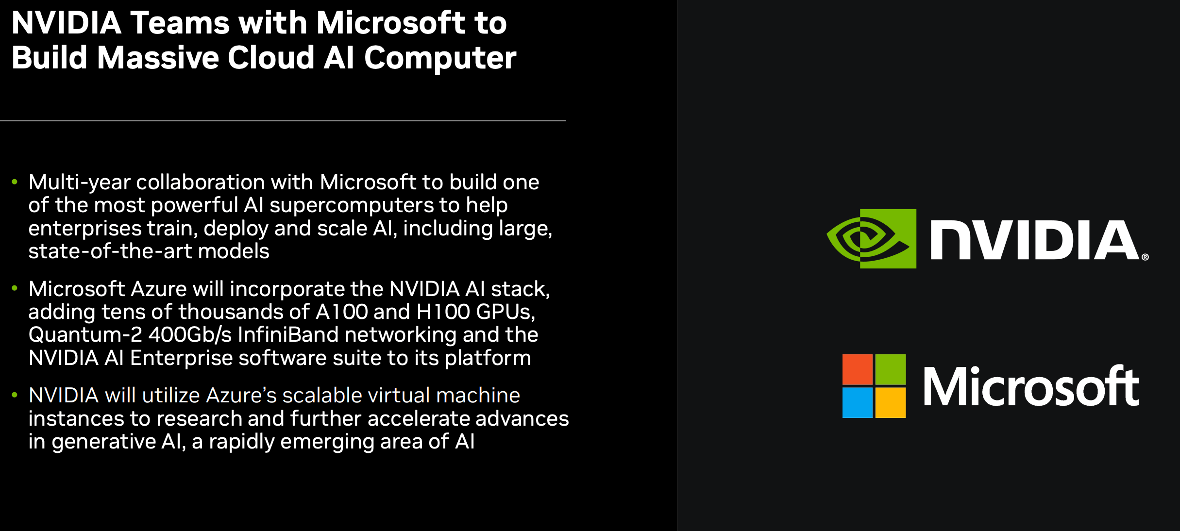 On Tuesday, ahead of the earnings drop, light around exactly how deeply embedded NVDA is into the future of just one of its clients – Microsoft (MSFT) – will be shed during the 3-day Microsoft developers conference. According to MSFT, the event will cover many of the new Microsoft APIs, products and services on the way, as well as feature sessions on Nvidia’s AI Enterprise, the Nvidia H100 GPU-powered VM series for generative AI, and the new Nvidia Omniverse Cloud on Azure.