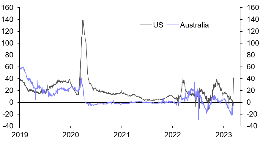 “So far though, there are no clear signs of trouble in funding markets. While short-term money market spreads have surged in the US, they remain very low in Australia.”