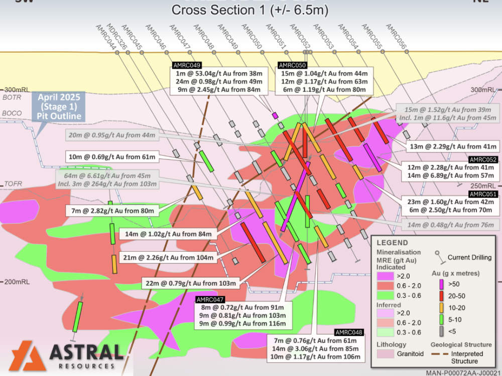 Astral Resources (ASX:AAR) notes these holes have regularly intersected broad zones of gold mineralisation, demonstrating a strong correlation to the current Theia resource of 33.3Mt at 1.1g/t, or 1.15Moz of contained gold.