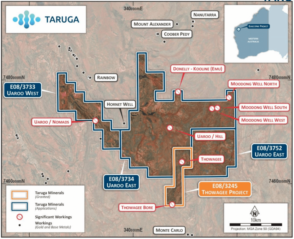 Just down the road, Taruga Minerals (ASX:TAR) has recently nabbed three contiguous permits (covering 416.5km2) which contain numerous high-grade historical workings for base and precious metals.