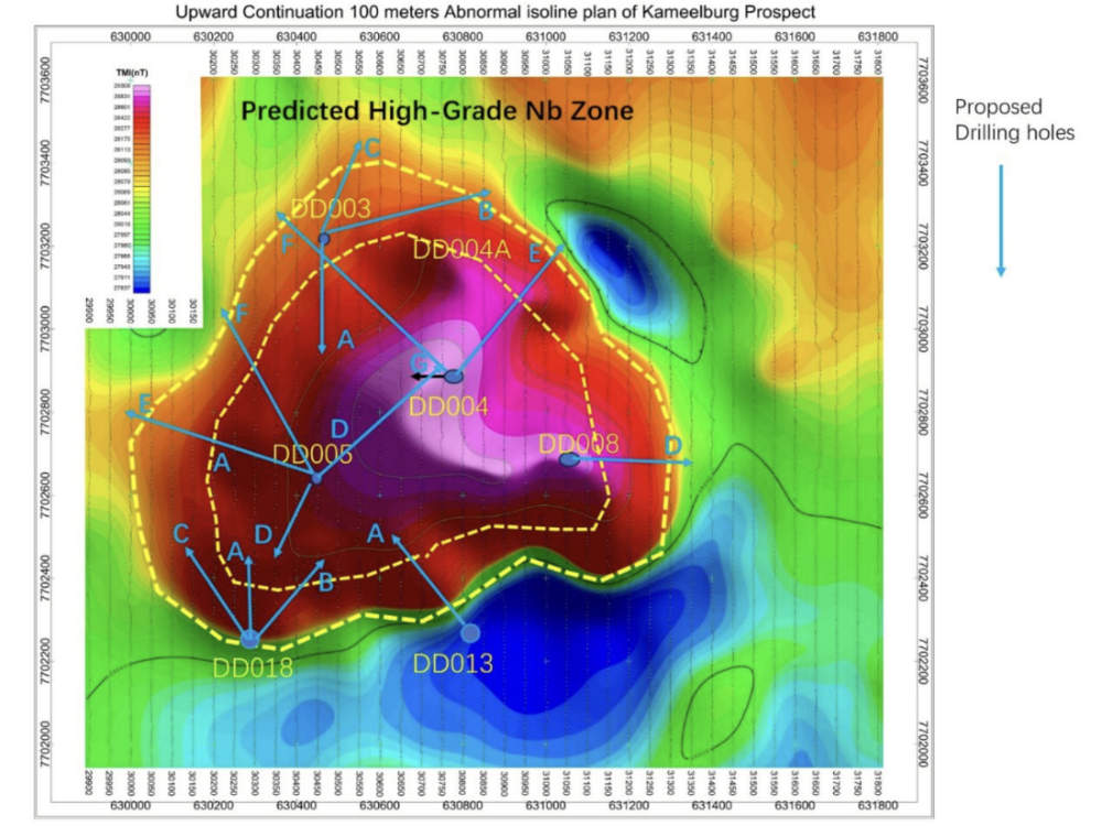 “At Kameelburg, the new high-capacity diamond rig will enable us to test the high-grade Niobium zones identified by our geological model,” chairperson Quinn Li said.