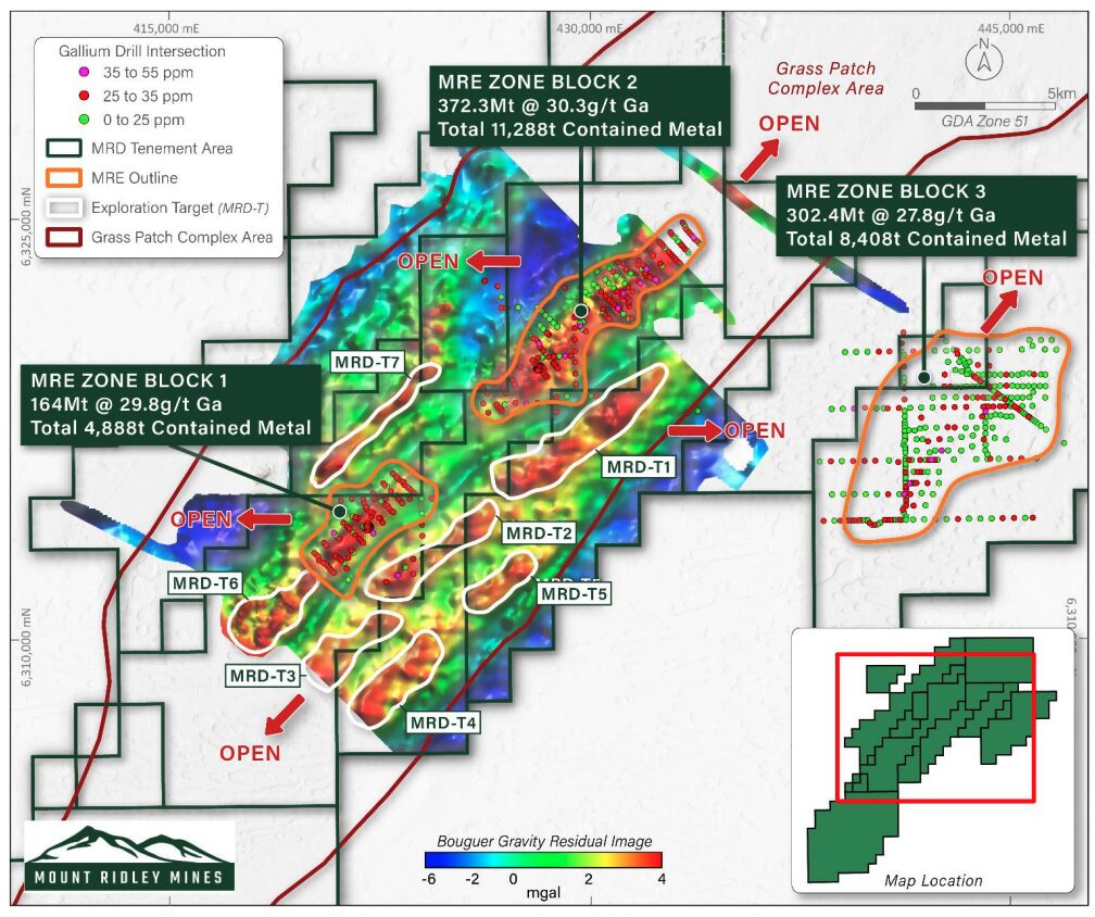 It has also identified seven high-priority target zones, forming an entirely untested 33km corridor directly adjacent to Mount Ridley’s (ASX:MRD) gallium resources in Block 1 (164.1Mt at 29.8ppm) and Block 2 (372.2Mt at 30.3ppm).