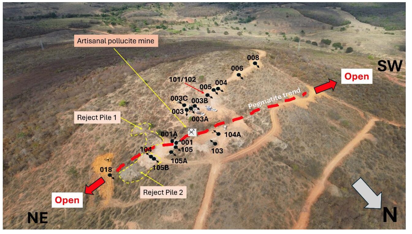 Certified overlimit assays from samples reported last month have returned grades as high as 28.3% caesium oxide with other standout results including 27.9%, firmly establishing Morro Grande as a highly enriched LCT-style pegmatite.