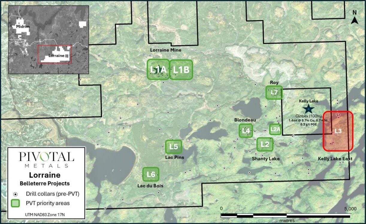 In the meantime, Pivotal will complete several geophysical surveys over the wider Lorraine project before moving on to cover the nearby Alotta, Midrim and Lac Croche areas.