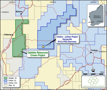 Oakdale Resources’s Crown gold project abuts Chalice Gold’s Julimar project in WA