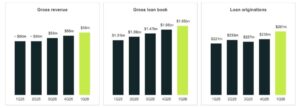 MoneyMe’s (ASX: MME) loan book rose to $1.65 billion in Q1 FY26, up 26% on the previous corresponding period (pcp), supported by loan originations of $261 million, up 18%.